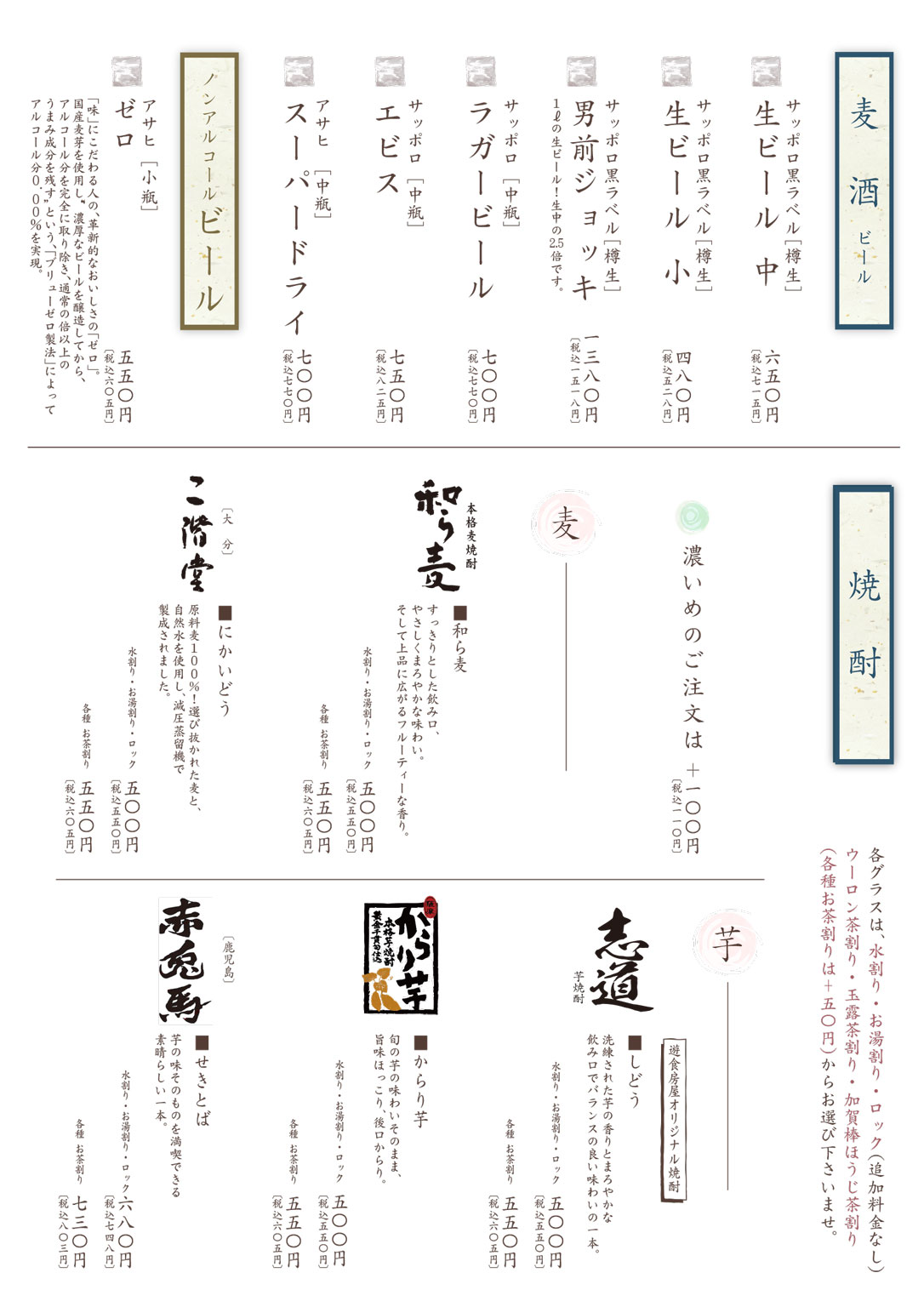 江戸小路 鮮 遊食房屋 丸亀店のお飲み物メニュー