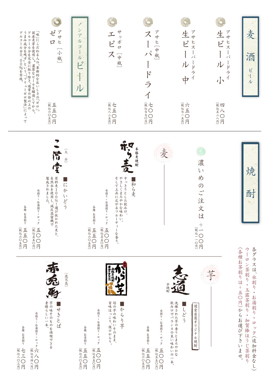 江戸小路 鮮 遊食房屋 新居浜店のお飲み物メニュー