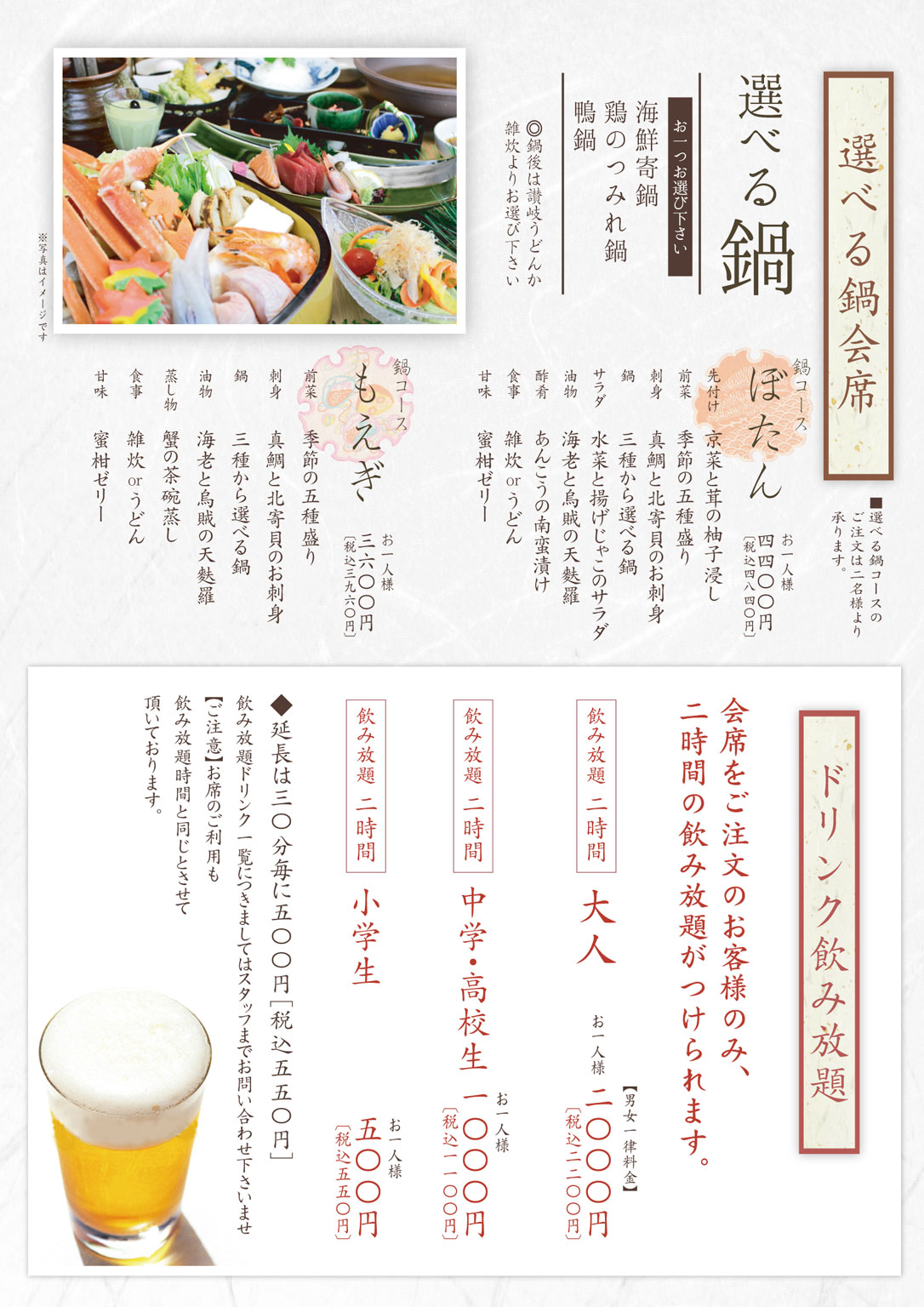 江戸小路 鮮 遊食房屋 岡山総社店のコースメニュー